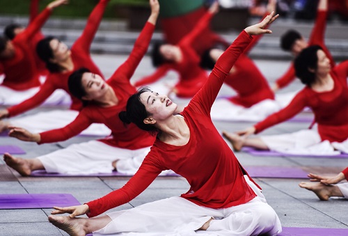 2024年(nián)6月(yuè)21日(rì),江西(xī)省撫州市(shì↔♠☆)資溪縣老(lǎo)年(nián)大(dà)學瑜珈班隊員(yuán)在司前社區(☆β≠qū)文(wén)化(huà)廣場(chǎng)表演,讓社區(qū)居民(m ♣ín)和(hé)當地(dì)群衆感受瑜珈魅力和(hé)形體(tǐ)之美(měi)。