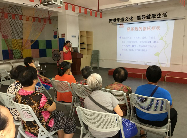 登革熱(rè)和(hé)登革出血熱(rè)不(bù)僅在東(dōng€☆)南(nán)亞流行(xíng)趨勢加重,而且在世界許多¶≤≠(duō)國(guó)家(jiā)和(hé)地(dβ≈γì)區(qū)複燃。登革出血熱(rè)由于症狀嚴重,死亡率高(gāo)而受到(dào)人(r↔≤€én)們的(de)關注。每年(nián)的(de)7—9月(yuè₽∑✔)份是(shì)登革熱(rè)的(de)高(gāo)峰®<期,針對(duì)近(jìn)期登革熱(rè)疫情,為(wèi)了(le)切實做(zuò$β&₽)好(hǎo)有(yǒu)關預防登革熱(rè)疫情的(de)工(gōnα£πg)作(zuò),提高(gāo)長(cháng≥<)者們對(duì)于登革熱(rè)的(de)防控意識,黃(huáng↑↓)石街(jiē)社區(qū)居家(jiā)養老(lǎo)綜合服<₩務中心于2019年(nián)7月(yuè)17日(rì)開(kāi)展了(le)預防登革熱&'(rè)健康講座活動。