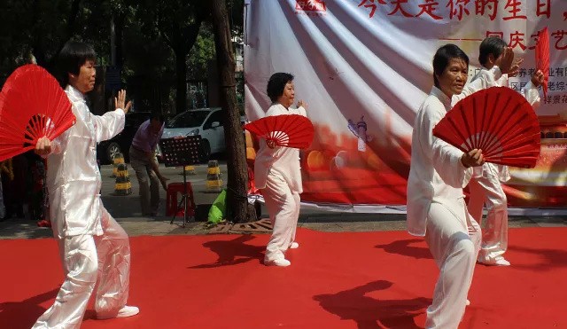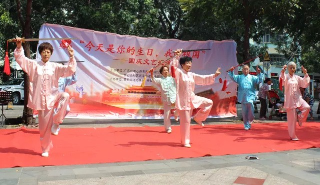 太極扇《蓮花(huā)扇》、《太極劍》展現(xiàn)了(le)社 •♠區(qū)居民(mín)健康向上(shàng)的(de)精神風(fēng)貌。
